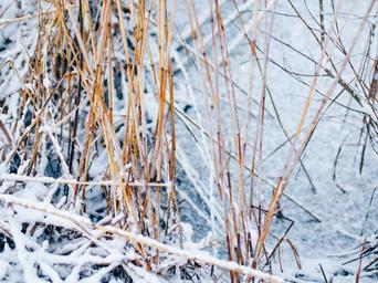 Keywords: pond winter reed withered dry snow cold frost ice water nature outdoors lake season frozen