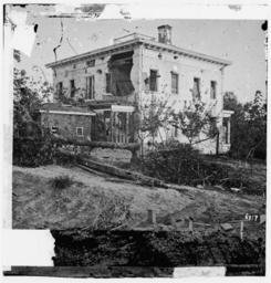| Keywords: Ponder House.jpg en Photograph shows damage done by Union shelling of the Ponder House at the end of Peachtree Street in Atlanta Georgia with Confederate breaskworks in the backyard Misidentified in old captions as Potter House 1864 http //www loc gov/pictures/collection/civwar/item/2005681137/ Barnard George N other versions PD-old-70-1923 Uploaded with UploadWizard American Civil War |