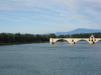 Keywords: pont saint bénézet pont d'avignon rhône avignon ruin arch bridge historic preservation bridge of avignon sur le pont d'avignon provence river places of interest tourist attraction water waters building architecture bending over ruins invaded collapsed destroyed ventoux mountain foresight distant view