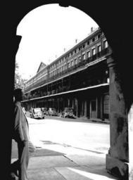 | Keywords: PontalbaArchPipeWPAStPeter1937.jpg Upper Pontalba Building New Orleans 1937 after WPA renovation work Shows Jackson Square side along St Peter Street from an archway of the Cabildo Building with a man smoking a pipe in foreground at left WPA photo Original caption The renovation of the historic Pontalba Buildings St Peter and Chartres Streets not only preserved a landmark but provided modern apartments for downtown dwellers Exterior Works Progress Administration photo via http //www nutrias org/~nopl/photos/wpa/wpa11 htm 1937-06-27 Uncredited WPA photographer PD-USGov 1937 in New Orleans Arches in New Orleans Pontalba Buildings |
