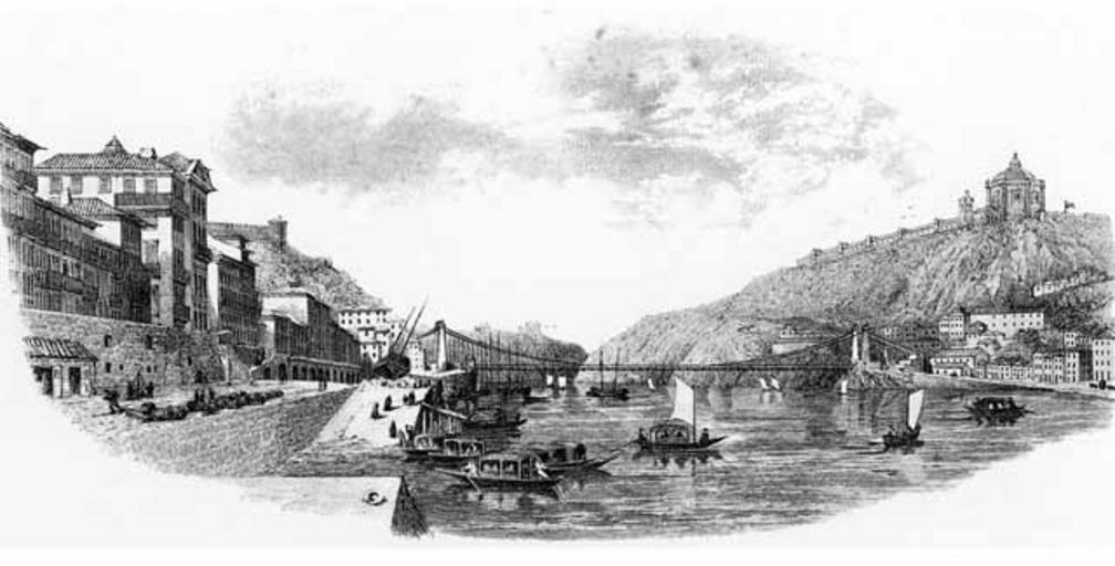 | Keywords: Ponte pênsil do Porto.jpg Ponte Pênsil do Porto Suspension Bridge Oporto Desenho do Barão de Forrester destinado a ilustrar com outros a litografia do seu mapa O Douro portuguez e Paiz adjacente estampado em 1860 http //lh5 ggpht com/_FkKgTDI7ngU/TGrGNDaWFkI/AAAAAAAAHtI/_goeUjbISBo/s1600-h/pensil2 5B5 5D jpg b 1860 Creator Joseph James Forrester PD-old-auto-1923 1861 Ponte pênsil D Maria II Porto in the 19th century Joseph James Forrester Europe in the 19th century Files uploaded by User JotaCartas Historical images of bridges in Portugal |