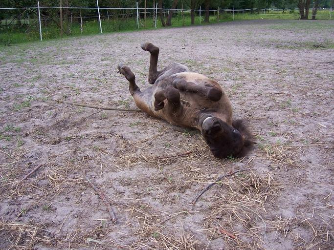 Keywords: pony foal concerns rolling happy animal nature cute young animal mammal cheerful