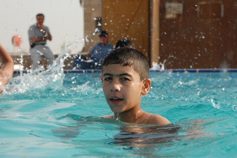 | Keywords: Pool Party for Iraqi Boy and Girl Scouts DVIDS121923.jpg en An Iraqi boy scout swims in the Australian swimming pool while visiting Camp Victory Baghdad Iraq on Oct 11 2008 2008-10-11 Staff Sgt James Wagner https //www dvidshub net/image/121923 081011-N-+++++-051 2008-10-13 16 26 BAGHDAD IQ PD-USGov-Military-Navy Camp Victory Images from DoD uploaded by Fæ | ||||