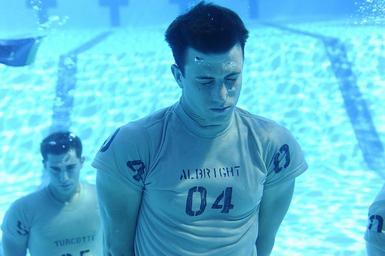 Keywords: pool water men underwater holding breath training floating standing exercise