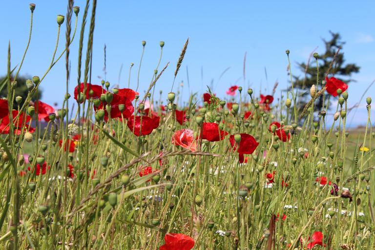 Keywords: poppies flower bloom field red petals buds flora wild herbs nature summer
