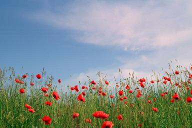 Keywords: poppies red field poppy meadow blue sky summer flowers grass poppy flower