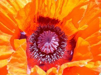 Keywords: poppy blossom bloom flower orange pollen pistil