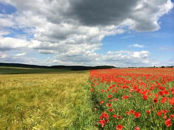 Keywords: poppy cornflower field barley bloom spring pointed flower