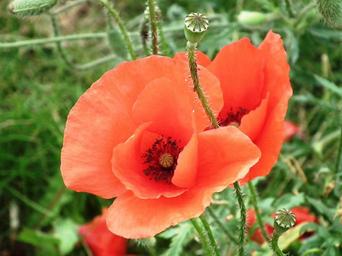 Keywords: poppy flower klatschmohn blossom bloom red green black close wild flower meadow