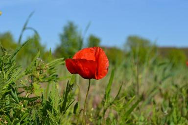 Keywords: poppy flower nature spring red red flower green meadow flowers field bloom blue sky