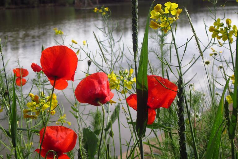 Keywords: poppy grass weed pond water
