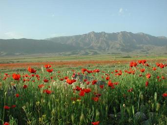 Keywords: poppy mountains ararat fields border turkey armenia summer red plant blossom bloom flower horizon