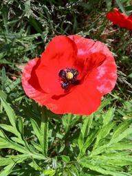 Keywords: poppy poppy flower klatschmohn red green plant calyx nature edge of field leaves complementary colors black