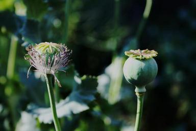 Keywords: poppy seedpod green remnant of bloom round veined stem garden