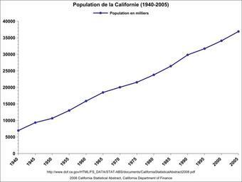 | Keywords: Population Californie (1940-2005).svg fr Evolution de la population en Californie entre 1940 et 2005 Source url http //www dof ca gov/HTML/FS_DATA/STAT-ABS/documents/CaliforniaStatisticalAbstract2008 pdf 2008 California Statistical Abstract Own Urban 2009-05-01 File California Population 1940-2005 svg Demographics of California |