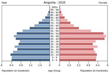 | Keywords: Population pyramid of Anguilla 2015.png en A population pyramid illustrates the age and sex structure of population and may provide insights about political and social stability as well as economic development The population is distributed along the horizontal axis with males shown on the left and females on the right The male and female populations are broken down into 5-year age groups represented as horizontal bars along the vertical axis with the youngest age groups at the bottom and the oldest at the top The shape of the population pyramid gradually evolves over time based on fertility mortality and international migration trends Віково-статева пі аміда населення Ангільї за 2015 ік Вона дає наочне уявлення п о вікову і статеву ст укту а населення к аїни може слугувати дже елом інфо мації п о політичну і соціальну стабільність економічний озвиток Блакитними кольо ами ліво уч у вигляді го изонтальних смуг показані вікові г упи по 5 оків кожна чоловічої статі п аво уч ожевими жіночої аймолодші вікові г упи внизу найста іші вго і Фо ма пі аміди поступово еволюціонує з плином часу під впливом чинників на оджуваності сме тності і світової міг ації https //www cia gov/library/publications/the-world-factbook/ The World Factbook 2016-09-21 The Central Intelligence Agency Цент альне озвідувальне уп авління PD-USGov Population pyramids of Anguilla |
