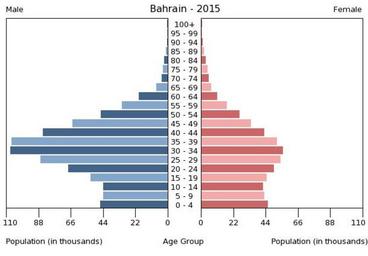 | Keywords: Population pyramid of Bahrain 2015.png en A population pyramid illustrates the age and sex structure of population and may provide insights about political and social stability as well as economic development The population is distributed along the horizontal axis with males shown on the left and females on the right The male and female populations are broken down into 5-year age groups represented as horizontal bars along the vertical axis with the youngest age groups at the bottom and the oldest at the top The shape of the population pyramid gradually evolves over time based on fertility mortality and international migration trends Віково-статева пі аміда населення Бах ейну за 2015 ік Вона дає наочне уявлення п о вікову і статеву ст укту а населення к аїни може слугувати дже елом інфо мації п о політичну і соціальну стабільність економічний озвиток Блакитними кольо ами ліво уч у вигляді го изонтальних смуг показані вікові г упи по 5 оків кожна чоловічої статі п аво уч ожевими жіночої аймолодші вікові г упи внизу найста іші вго і Фо ма пі аміди поступово еволюціонує з плином часу під впливом чинників на оджуваності сме тності і світової міг ації https //www cia gov/library/publications/the-world-factbook/ The World Factbook 2016-09-21 The Central Intelligence Agency Цент альне озвідувальне уп авління PD-USGov Population pyramids of Bahrain |
