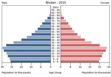 | Keywords: Population pyramid of Bhutan 2015.png en A population pyramid illustrates the age and sex structure of population and may provide insights about political and social stability as well as economic development The population is distributed along the horizontal axis with males shown on the left and females on the right The male and female populations are broken down into 5-year age groups represented as horizontal bars along the vertical axis with the youngest age groups at the bottom and the oldest at the top The shape of the population pyramid gradually evolves over time based on fertility mortality and international migration trends Віково-статева пі аміда населення Бутану за 2015 ік Вона дає наочне уявлення п о вікову і статеву ст укту а населення к аїни може слугувати дже елом інфо мації п о політичну і соціальну стабільність економічний озвиток Блакитними кольо ами ліво уч у вигляді го изонтальних смуг показані вікові г упи по 5 оків кожна чоловічої статі п аво уч ожевими жіночої аймолодші вікові г упи внизу найста іші вго і Фо ма пі аміди поступово еволюціонує з плином часу під впливом чинників на оджуваності сме тності і світової міг ації https //www cia gov/library/publications/the-world-factbook/ The World Factbook 2016-09-21 The Central Intelligence Agency Цент альне озвідувальне уп авління PD-USGov Population pyramids of Bhutan |