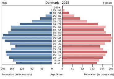 | Keywords: Population pyramid of Denmark 2015.png en A population pyramid illustrates the age and sex structure of population and may provide insights about political and social stability as well as economic development The population is distributed along the horizontal axis with males shown on the left and females on the right The male and female populations are broken down into 5-year age groups represented as horizontal bars along the vertical axis with the youngest age groups at the bottom and the oldest at the top The shape of the population pyramid gradually evolves over time based on fertility mortality and international migration trends Віково-статева пі аміда населення Данії за 2015 ік Вона дає наочне уявлення п о вікову і статеву ст укту а населення к аїни може слугувати дже елом інфо мації п о політичну і соціальну стабільність економічний озвиток Блакитними кольо ами ліво уч у вигляді го изонтальних смуг показані вікові г упи по 5 оків кожна чоловічої статі п аво уч ожевими жіночої аймолодші вікові г упи внизу найста іші вго і Фо ма пі аміди поступово еволюціонує з плином часу під впливом чинників на оджуваності сме тності і світової міг ації https //www cia gov/library/publications/the-world-factbook/ The World Factbook 2016-09-21 The Central Intelligence Agency Цент альне озвідувальне уп авління PD-USGov Population pyramids of Denmark |