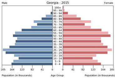 | Keywords: Population pyramid of Georgia 2015.png en A population pyramid illustrates the age and sex structure of population and may provide insights about political and social stability as well as economic development The population is distributed along the horizontal axis with males shown on the left and females on the right The male and female populations are broken down into 5-year age groups represented as horizontal bars along the vertical axis with the youngest age groups at the bottom and the oldest at the top The shape of the population pyramid gradually evolves over time based on fertility mortality and international migration trends Віково-статева пі аміда населення Г узії за 2015 ік Вона дає наочне уявлення п о вікову і статеву ст укту а населення к аїни може слугувати дже елом інфо мації п о політичну і соціальну стабільність економічний озвиток Блакитними кольо ами ліво уч у вигляді го изонтальних смуг показані вікові г упи по 5 оків кожна чоловічої статі п аво уч ожевими жіночої аймолодші вікові г упи внизу найста іші вго і Фо ма пі аміди поступово еволюціонує з плином часу під впливом чинників на оджуваності сме тності і світової міг ації https //www cia gov/library/publications/the-world-factbook/ The World Factbook 2016-09-21 The Central Intelligence Agency Цент альне озвідувальне уп авління PD-USGov Population pyramids of Georgia |