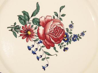 Keywords: porcelain plate rose ornament red white paint painting imprint