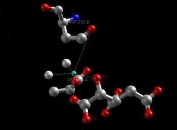 Keywords: Porcine Mitochondrial IDH mn interaction.jpg Mn2+ metal-ion interaction between Isocitrate and 2 Asp AA From PDB 1LWD Created using Chimera Own Haynathart Oxidoreductases Manganese complexes