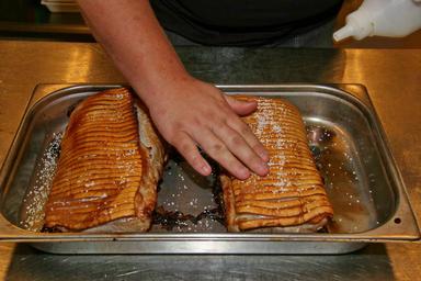 Keywords: pork roast pork loin pork severe crackling food dining comb ready for serving salting chef chefs work