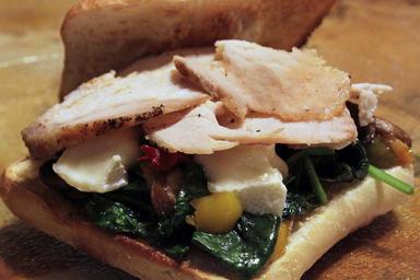 Keywords: pork spinach brie mushroom cheese cuisine diet dinner breakfast eat eating food fresh freshness fried green healthy lunch snack sandwich plate granite meal hot bread square glass toasted toast