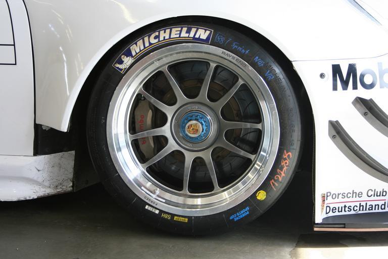 | Keywords: Porsche Motorsportrad.JPG en Porsche 997 GT3 R front alloy wheel used at Porsche Super Sports Cup Germany at Nürburgring 2013 de Porsche 997 GT3 R vorderes Leichtmetallrad eingesetzt beim Porsche Super Sports Cup Deutschland am Nürburgring 2013 own Abehn 2013-05-12 Alloy wheels with tires cc-by-sa-3 0 |