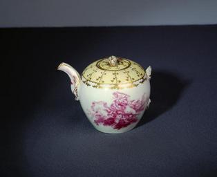 | Keywords: Porslin - Hallwylska museet - 73738.tif Tekanna med lock av stympad omvänd päronform med insänkt botten Dekor av bårder i guld och guld samt lekande amoriener i rödviolett på glasyren original caption Porslin decade 1760 size cm 1 6 lock size cm 3 3 lock size cm 7 8 utan lock size cm 8 2 size cm 8 3 HWY place of origin Berlin DE original filename hm_t010885 17468 inventory number HWY XLVII XII C a j 01 73738 CC-BY-SA Samuel Uhrdin Samuel Uhrdin Porcelain in the Hallwyl museum Media contributed by LSH dim-with multiple size templates Media contributed by LSH 2013-10 |