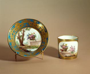 | Keywords: Porslin. Kopp med fat. Gulddekor - Hallwylska museet - 30928.tif Cylinderformig kopp med insänkt botten Dekor i form av turkosblå fond var på bårder och bladornament i guld samt ett bildfält med blomsterstilleben På fatet ett landskap med blomsterkorg Dekor i färger och guld de förra nedsmälta i glasyren Marques en creux Tasse 18 ; fabrication double L sans lettre-date ; décoration trait surmonté d'un trait interrompu par un demi-cercle en bleu 1 ; FB en noir 2 ; Soucoupe fabrication double L lettre-date Z ; FB en noir ; reste uniquement la trace de la marque du peintre ci-dessus Dekor med blommor och frukter i landskap Den turkosblå fondfärgen kallad bleu céleste anspelar på produkter från Kina Himmelska Riket skapades i Vincennes av kemisten Jean Hellot år 1753 och var i bruk ända till slutet av 1700-talet Bleu Celeste är en av det mjuka porslinets mest utmärkande fondfärger Den ganska avancerade blomsterdekoren är av den typ som i fabriksliggaren omnämns som blommor och landskap 3 Gulddekoren tycks nästan vara alltför massiv i förhållande till ramornamenten vars baldakiner har lämnats vita vilket är ovanligt för denna tidsperiod 1 Blomstermålaren Guillaume Noëls stämpel verksam 1755-1800 Peters 1997 sid 55 2 Blomster- och dekorationsmålaren Francois Marie Barrats stämpel verksam 1769-1791 och 1795-1796 ibid sid 11 3 Litronkoppar med landskaps- och blomsterdekor omnämns den 21 oktober 1778 och den 12 januari 1779 i bränningsregistret Därefter omnämns de aldrig mera antingen därför att de inte längre utfördes eller därför att de registrerades under ett annat namn Manufacture nationale de Sèvres arkiv liggare Vl' 1 Pris 399 Kr Se Hushållsbok 28 sept 1927 original caption Porslin Kopp med fat Gulddekor 1777 size cm 3 5 fat size cm 6 8 kopp size cm 7 size cm 13 6 fat HWY place of origin Sèvres FR original filename hm_t010800 17886 inventory number HWY XLVII IV R a b 11 30928 CC-BY-SA Samuel Uhrdin Samuel Uhrdin Porcelain in the Hallwyl museum Drinkware Media contributed by LSH dim-with multiple size templates Media contributed by LSH 2013-10 |
