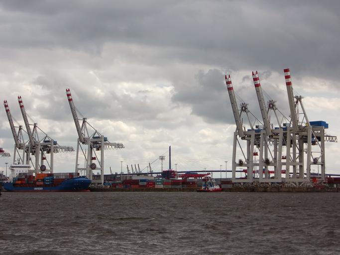 Keywords: port cranes cargo harbour cranes industry container load crane hamburg lifting crane loading