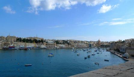 Keywords: port fishing boats holiday boats colorful fortress malta mediterranean travel blue summer sky landscape