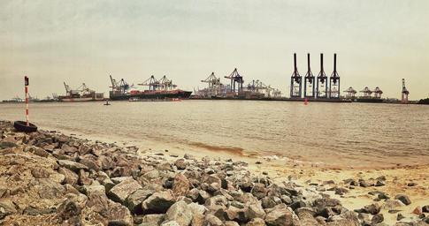 Keywords: port hamburg pontoon water container ship shipping