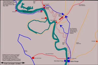 Keywords: Port Hudson Plains Store Five.svg en Sketch map showing the advance of Union forces on the fortifications of Port Hudson May 14-22 1863 own Calendar5 2011-02-25 Cc-zero Maps showing 19th-century history