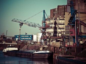 Keywords: port inland port shipping cargo ships ship loading crane crane warehouse industry neuss rhine