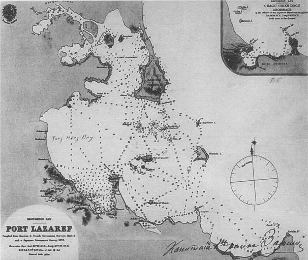 Keywords: Port Lazaref.jpg ru Ка та места гибели к ейсе а I анга «Витязь» В п авом нижнем углу подпись команди а ко абля капитана 1 анга С А За ина http //keu-ocr narod ru/Vityaz/ Author century 19 Wonsan PD-old