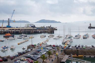 Keywords: port marina harbour ferry lifeboat cars parking dock water sea