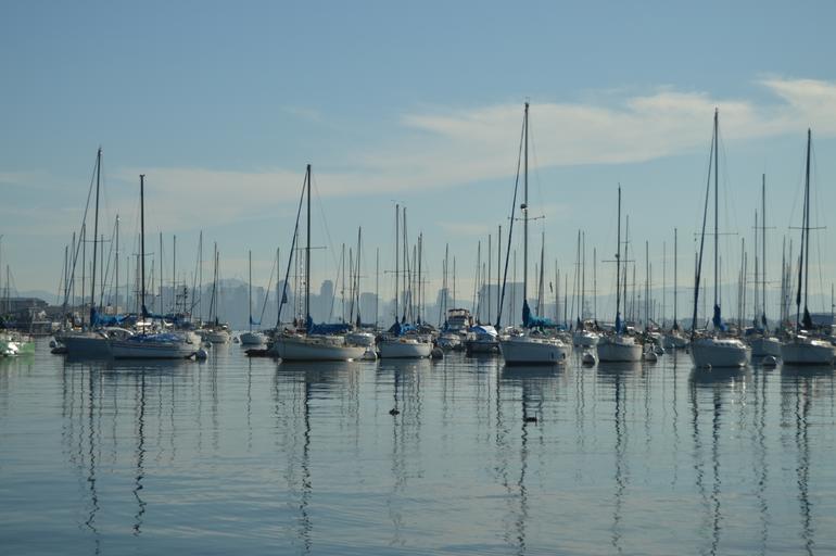 Keywords: port ocean ship reflection sea blue light water sky clouds
