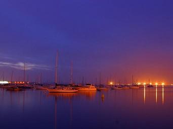 Keywords: port pier boats abendstimmung sea reflection rest calm night long time lighting blue quiet sky water