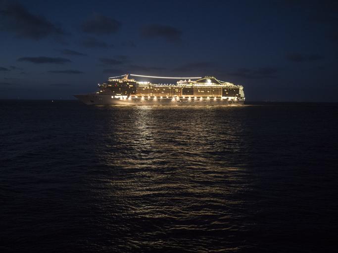Keywords: port ship cruise ship night lights coast msc sky romantic sea north sea holiday cruise