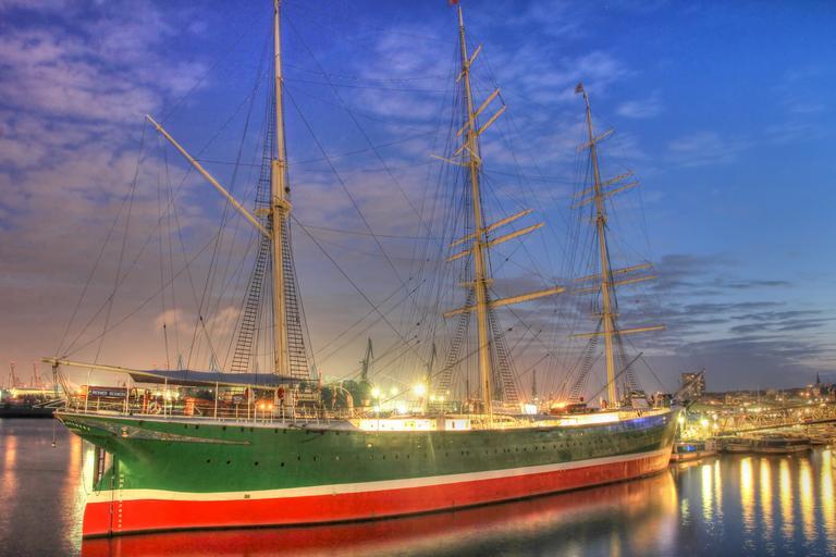 Keywords: port ship water hamburg marina germany elbe maritime shipping anchorage boot port city sailing vessel abendstimmung museum ship romantic