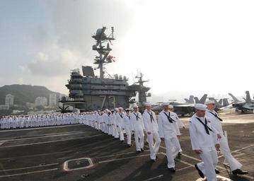 | Keywords: Port Visit to Hong Kong DVIDS218167.jpg en Sailors march across the flight deck aboard the aircraft carrier USS George Washington CVN 73 to man the rails as George Washington enters Kowloon Bay for a port visit to Hong Kong George Washington Sailors will conduct 12 different community service projects designed to give something back to their host city during their visit 2009-10-29 Marcos Vazquez https //www dvidshub net/image/218167 091029-N-+++++-024 2009-10-29 23 35 UNDISCLOSED LOCATION PD-USGov-Military-Navy USS George Washington CVN-73 Images from DoD uploaded by Fæ Images from US Navy location Hong Kong |
