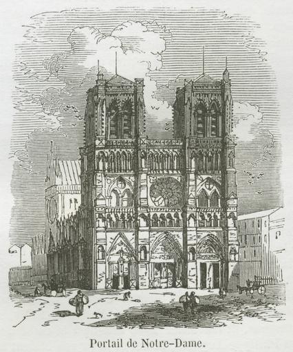 | Keywords: Portail de Notre-Dame, 1855.jpg A view of the front of the Cathedral of Notre-Dame on the Ile de la Cité in Paris 1855 engraving 7 x 6 cm Institution Brown University Library object history exhibition history credit line Published in Guide dans les monuments de Paris Paris Paulin et Le Chevalier 1855 accession number 1150468934173085 PD-old Engravings of buildings in Paris Images of Paris from the Brown University Library Guide dans les monuments de Paris Engravings of Notre-Dame de Paris West facade of Notre-Dame de Paris before 2000 Notre-Dame de Paris in the 1850s |