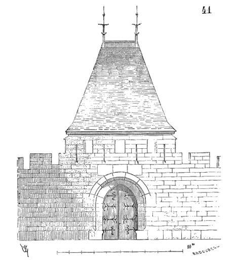 | Keywords: Porte.barbacane.Carcassonne.2.png Vers la fin de son règne le roi Louis IX fit relever l'enceinte extérieure et réparer le château de la cité de Carcassonne Du côté de la ville il fit construire une barbacane sur plan semi-circulaire qui défendait l'approche de la porte du château porte que nous avons donnée figures 3 4 5 et 6 La barbacane du château de Carcassonne en forme de demi-lune s'ouvre sur les rues de la cité par une porte d'une construction aussi simple que bien entendue; et cette porte ne débordant pas le nu du mur circulaire composant la barbacane est ouverte entièrement du côté de l'intérieur de sorte que les défenseurs de l'entrée du château pouvaient voir complétement ceux de la porte de la barbacane et même leur donner des ordres Si les assiégeants s'emparaient de cette première entrée il était facile de les couvrir de projectiles Viollet-le-Duc Portals Viollet-le-Duc Castle Viollet-le-Duc Fortification Viollet-le-Duc Barbicans in France Historic fortified city of Carcassonne in art Merlons Drawings of defensive walls |