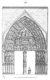 | Keywords: Porte.de.la.Vierge.cathedrale.Paris.png La figure 68 présente l'élévation de cette porte qui est tout un poëme de pierre Sur le socle du trumeau central est placée la statue de la Vierge tenant l'enfant; sous ses pieds elle foule le dragon à tête de femme dont la queue s'enroule au tronc de l'arbre de la science Adam et Ève des deux côtés de l'arbre sont tentés par le serpent Sur la face gauche du socle est sculptée la création d'Ève et sur celle de droite l'ange chassant nos premiers parents du paradis Un dais très-riche soutenu par deux anges thuriféraires surmonte la tête de la Vierge et se termine par un charmant édicule recouvrant l'arche d'alliance On voudra bien se rappeler que les litanies donnent à la Vierge le titre d'Arche d'alliance Ainsi sur ce trumeau la glorification de la mère du Christ est complète Elle tient dans ses bras le Rédempteur; suivant la parole de l'Écriture elle écrase la tête du serpent et sa divine fonction est symbolisée par l'arche d'alliance Sur le linteau de la porte divisé en deux parties par l'édicule couronnant le dais sont sculptés à la droite de la Vierge trois prophètes assis la tête couverte d'un voile tenant un seul phylactère dans une attitude méditative; à la gauche trois rois couronnés dans la même pose Ces six figures sont des plus belles entre toutes celles de cette époque La présence des prophètes est expliquée par l'annonce de la venue du Messie; quant aux rois ils assistent à la scène comme ancêtres de la Vierge Les têtes de ces personnages sont particulièrement remarquables par l'expression d'intelligence méditative qui semble leur donner la vie Viollet-le-Duc Reliefs of Virgin Mary in France Paris cathedral north Portail de la Vierge of Notre-Dame de Paris Portail de la Vierge Gothic sculptures of Notre-Dame de Paris Portals Viollet-le-Duc Architectural drawings of Notre-Dame de Paris |