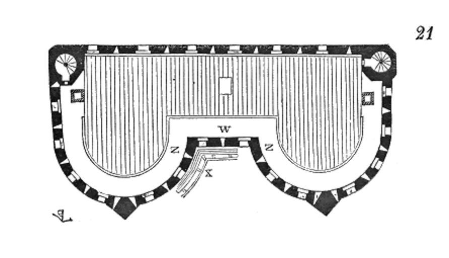 | Keywords: Porte.Narbonnaise.Carcassonne.4.png Nous donnons fig 21 le plan de l'étage M supérieur dont le plancher était de bois En WN sont les chemins de ronde de la défense et en X une partie des hourds en place Viollet-le-Duc Portals Viollet-le-Duc |