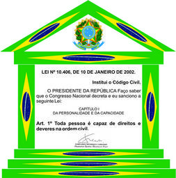 | Keywords: Portico do Código Civil Brasileiro de 2002.jpg pt Pórtico cerimonial do Código Civil Brasileiro de 2002 com Bandeira do Brasil contendo o artigo 1ª da Lei nº 10 406 de 10 de janeiro de 2002 own Almanaque Lusofonista 2014 Variations on flags of Brazil Fernando Henrique Cardoso Legislation of Brazil |