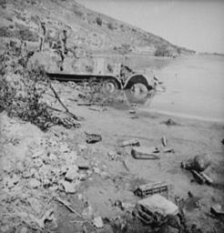 | Keywords: Porto Farina SdKfz 11 wreck May1943.jpg Wreck of a German SdKfz 11 half-track gun tractor on the beach near Porto Farina Tunisia in May 1943 <br> Original caption Port Farina beachside strewn with a wide assortment of Nazi military debris and a Nazi half-track in the water May 1943 U S Library of Congress photo Digital ID fsa 8d29865 Reproduction Number LC-USW3-029259-E 1943-05 U S Army PD-USGov Sonderkraftfahrzeug 11 World War II forces of Germany in Tunisia Ghar El Melh 1943 in Tunisia |