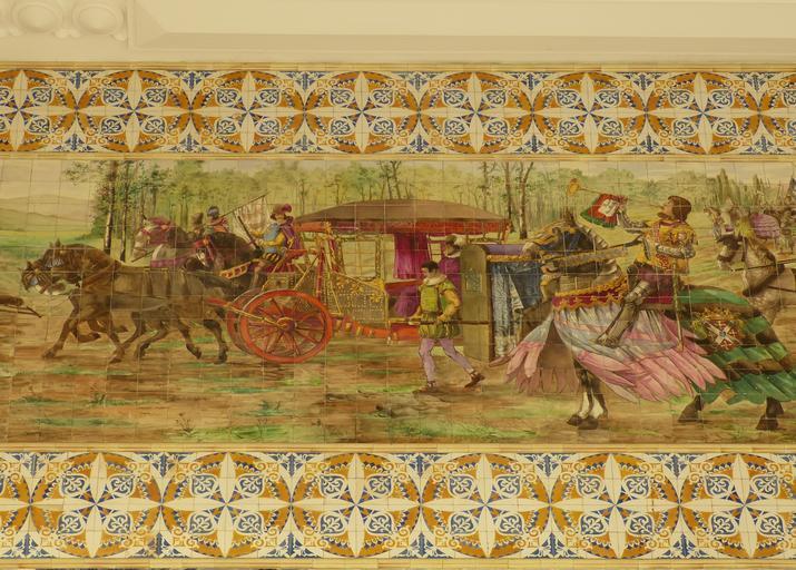 Keywords: porto portugal tourism azulejos historically travel railway station coach horse reiter trumpet tile tiles pattern ceramic decorative